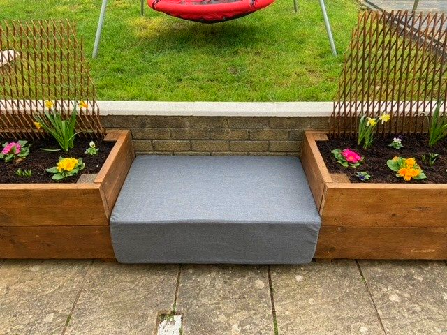 During the lockdowns, we have been requested to make bespoke cushions to fit into the frames of adventurous designs of home built seating from the effects of lockdown projects